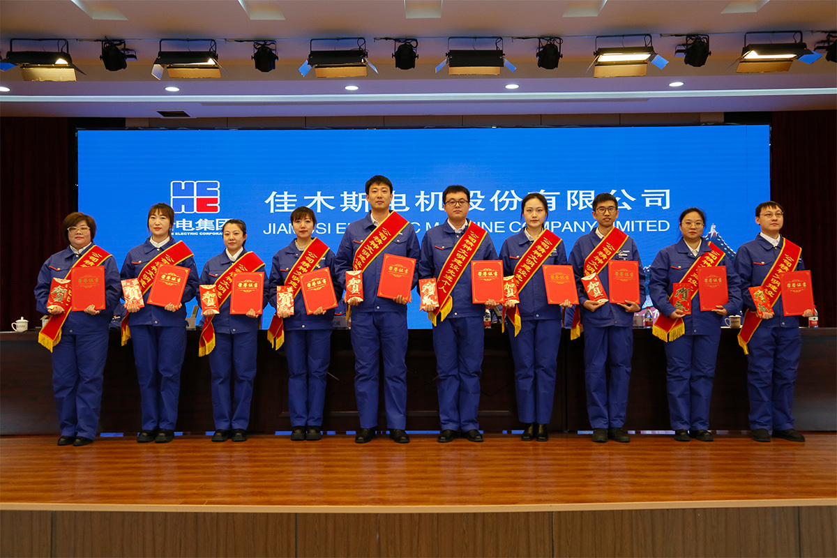佳電股份中層領導人員、中層助理,黨建工作部、紀委辦公室、巡察辦公室全體人員,各直屬黨組織委員、各直屬工會主席、各直屬團組織書記、黨外人士代表以及受到表彰的先進集體代表和先進個人等200余人參加會議。蘇州佳電永磁電機科技有限公司、先進電機技術有限公司以視頻會議形式參加會議。