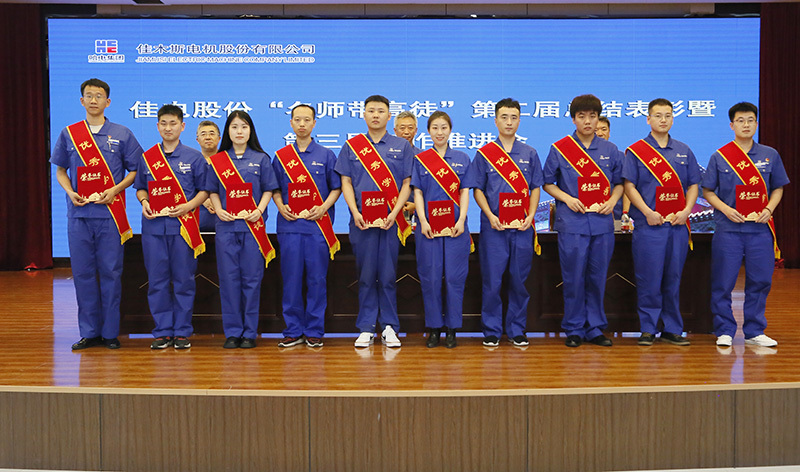 為扎實推進學習貫徹習近平新時代中國特色社會主義思想主題教育走深走實,積極踐行“破難題、促發展”工作舉措,大力弘揚“勞模精神、勞動精神、工匠精神”,7月26日,佳電股份召開“名師帶高徒”第二屆總結表彰暨第三屆工作推進會。佳電股份黨委副書記、總經理姜清海出席會議并講話,黨委副書記、工會主席劉漢成宣讀公司第二屆“名師帶高徒”工作總結暨對模范師傅和優秀學徒的表彰決定,副總經理劉亨主持會議。
