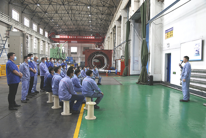 “全國勞動模范”、黑龍江省“龍江大工匠”、佳電股份首席技師、大型車間裝配工別林講授了《滑動軸承刮研理論知識》,把各種類型的軸瓦轉化成清晰明了的結構組圖,將軸瓦油楔控油、油膜剛度、旋轉速度、刮研技巧與間隙、緊力控制等技術要點與關聯影響進行了深入淺出的講解和提煉,干貨滿滿令現場職工受益匪淺。