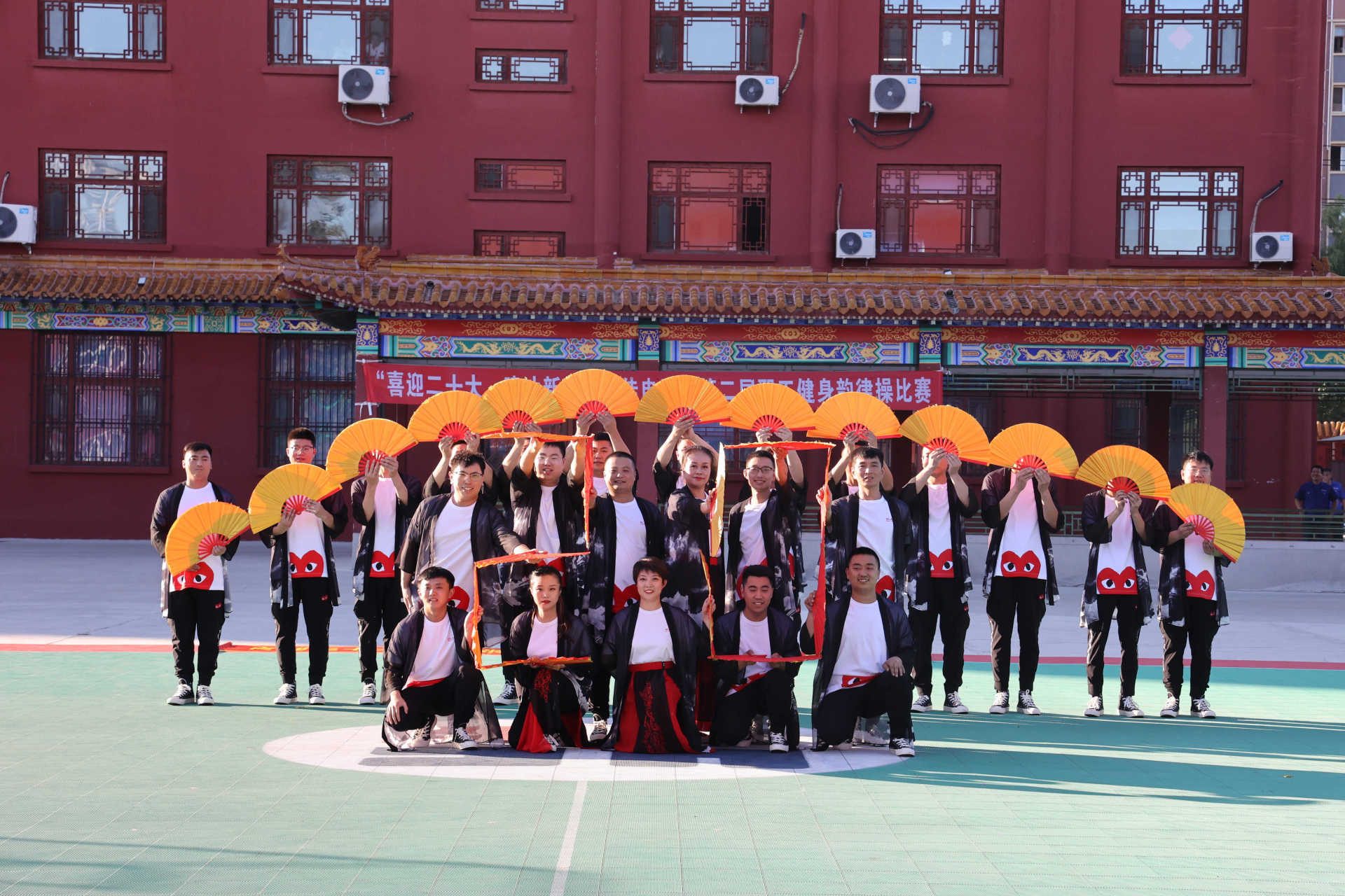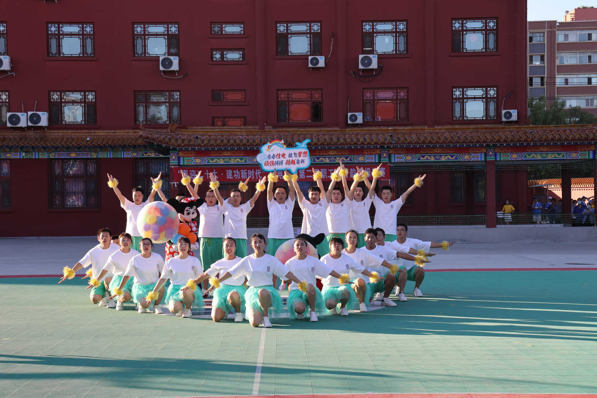 比賽現(xiàn)場氣氛熱烈歡快,參賽隊員個個精神飽滿。明快亮麗的服飾、歡樂躍動的音樂、整齊劃一的動作、舒展嫻熟的舞姿、熱情洋溢的笑容不斷呈現(xiàn)在觀眾面前。各參賽隊伍的表演通過別出心裁的編排和創(chuàng)意,在舞臺上展示著他們的自信與活力,為現(xiàn)場觀眾們奉獻了一場又一場風格各異、充滿活力的視覺盛宴,同時,展現(xiàn)了同心而動的團隊意識和昂揚向上的進取精神,贏得現(xiàn)場觀眾陣陣掌聲和喝彩聲。